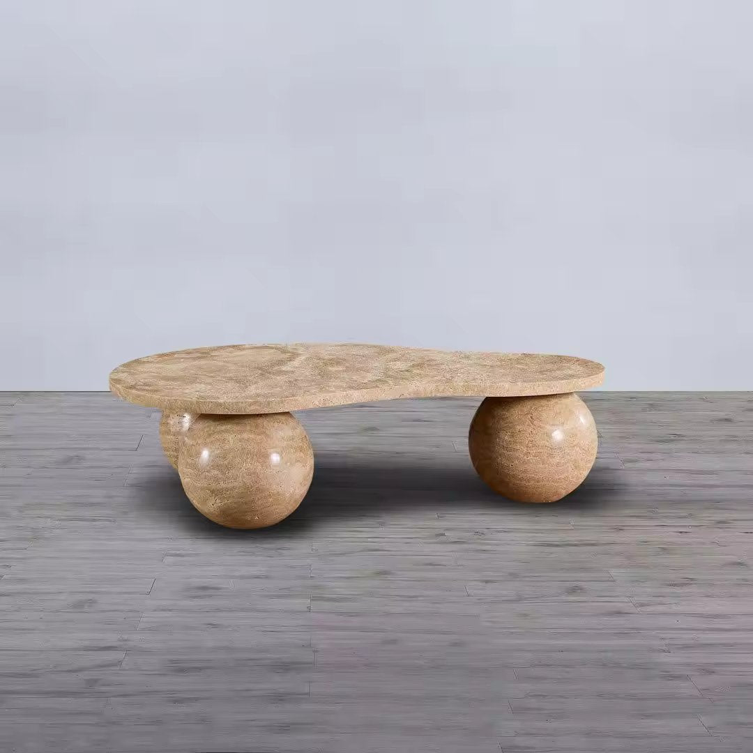 This travertine coffee table is made from high-quality marble and is available in various shapes and sizes. For personalized marble options, simply contact us and provide your desired design for a customized quote.